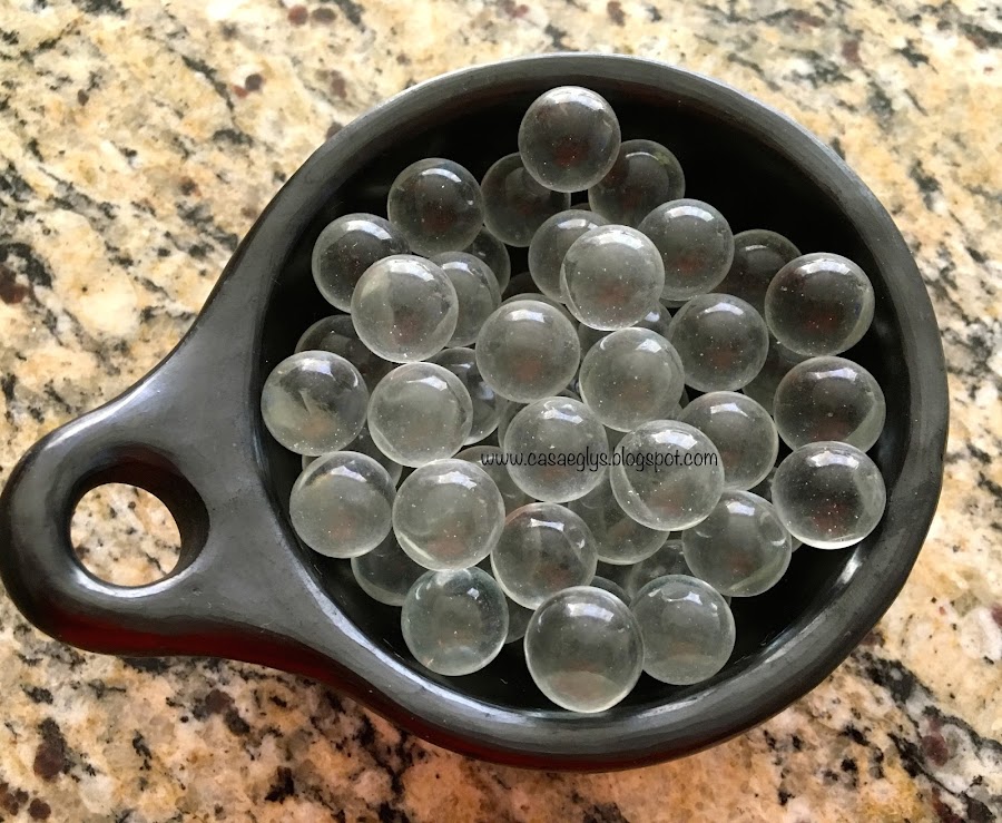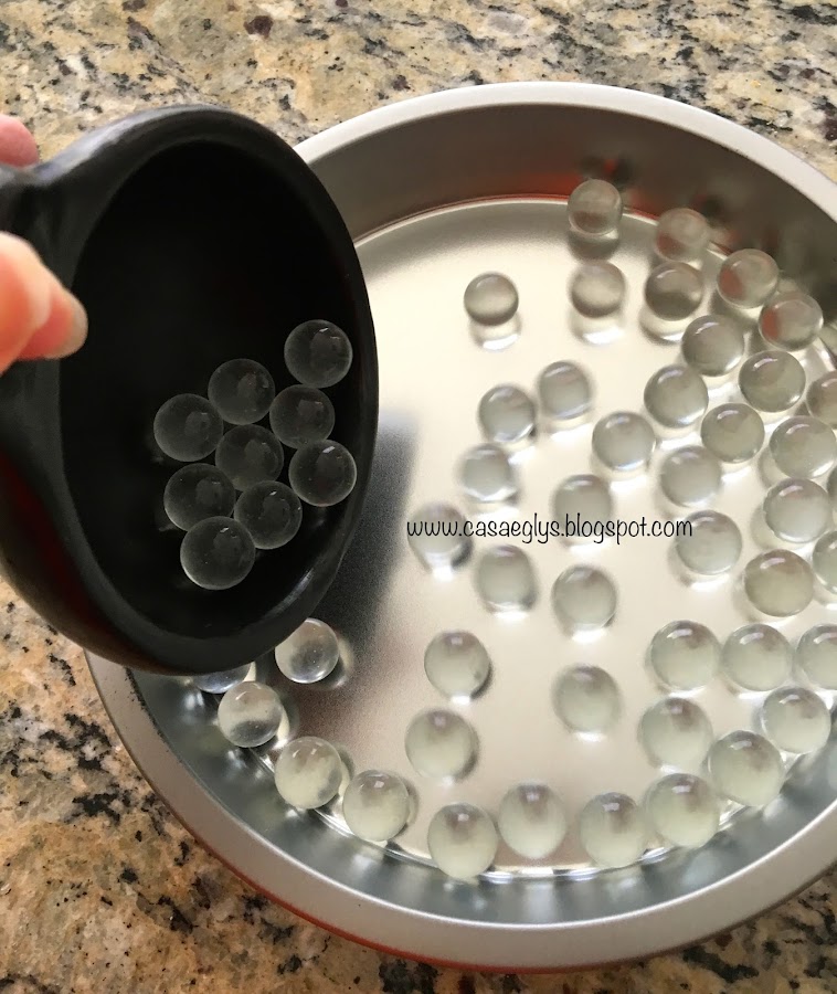 2.- Coloca las canicas dentro de una de las bandejas.