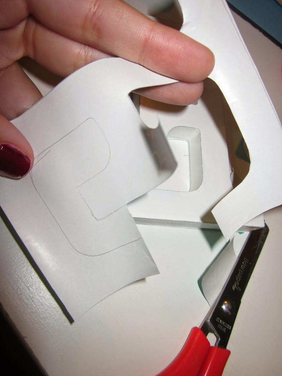 Lo primero es poner la inicial sobre el papel de regalo y realizar la silueta con el lápiz