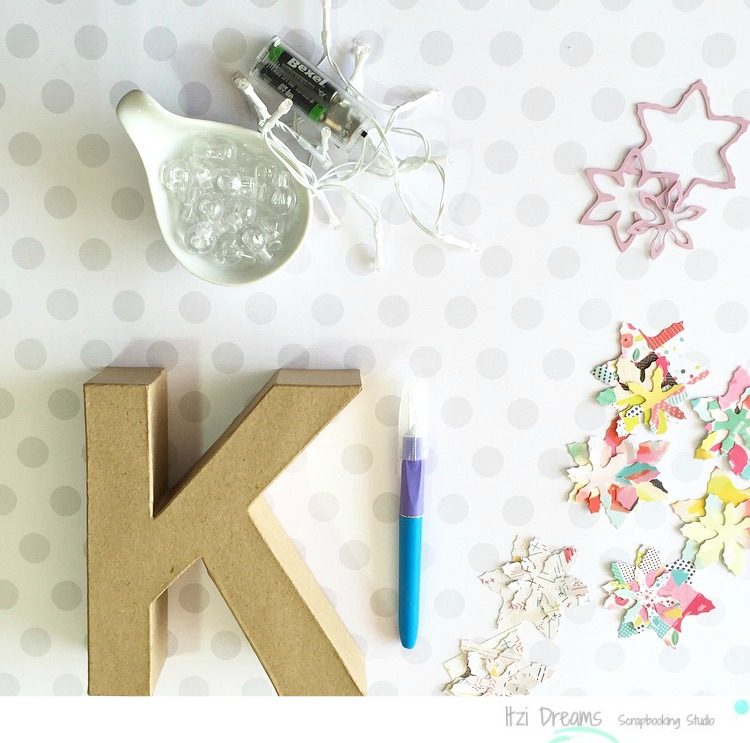 Esta es mi propuesta para el reto de Up and Scrap de este mes, se trata de hacer un DIY scrapero, una letra luminosa con flores scraperas!! Flores que para PRIMAVERA!!