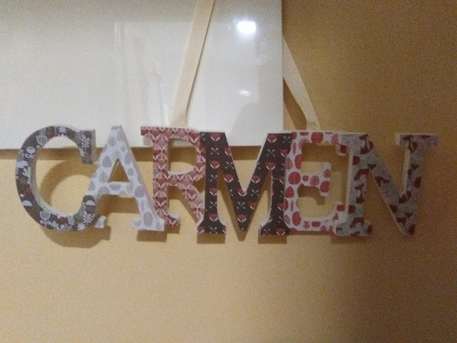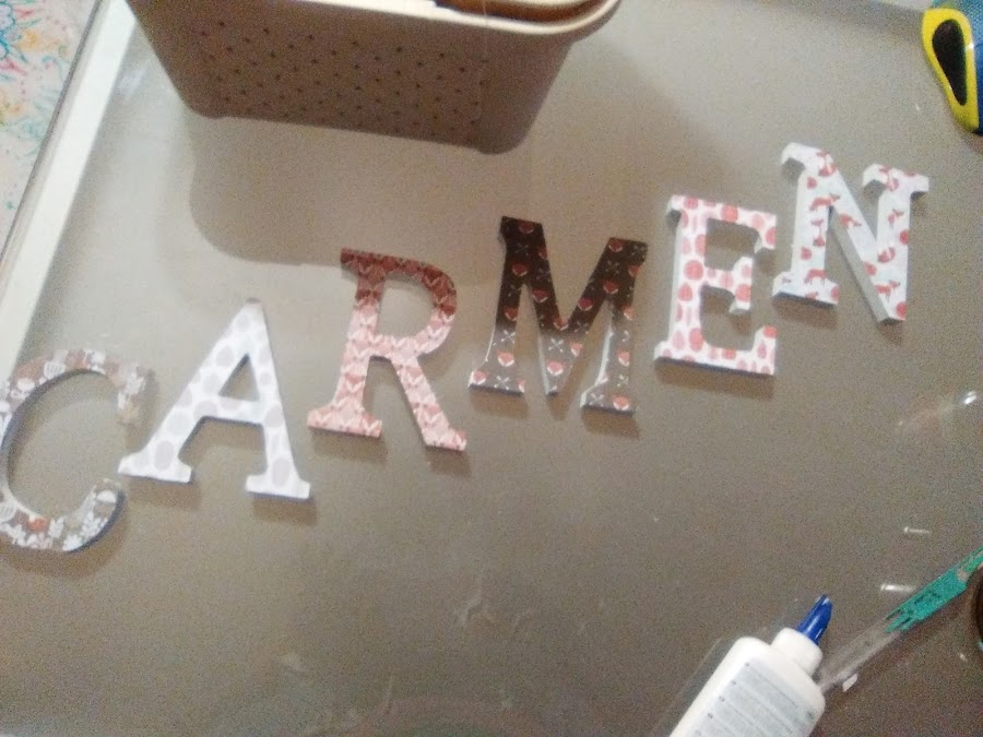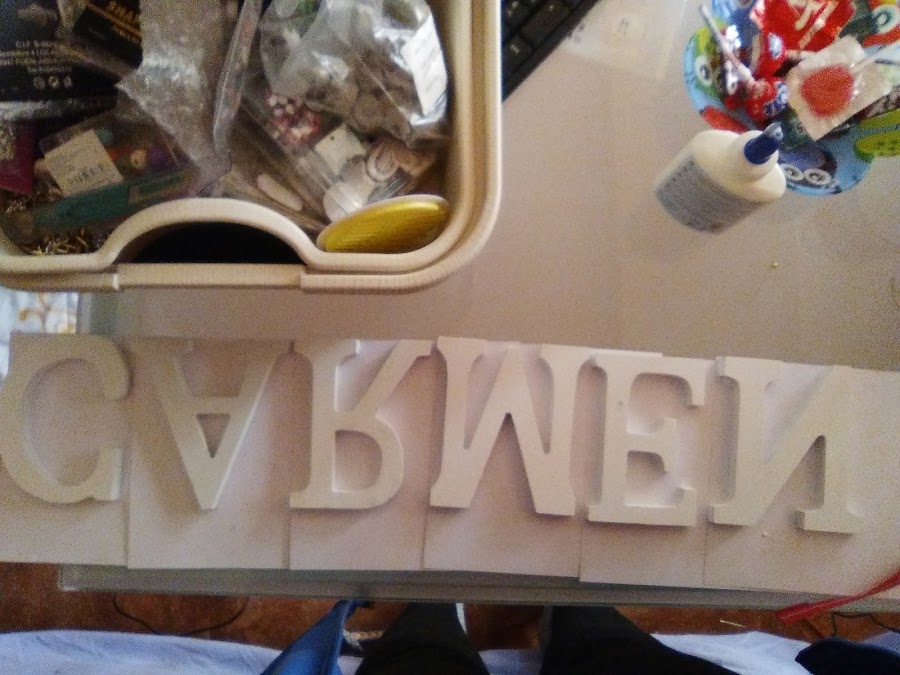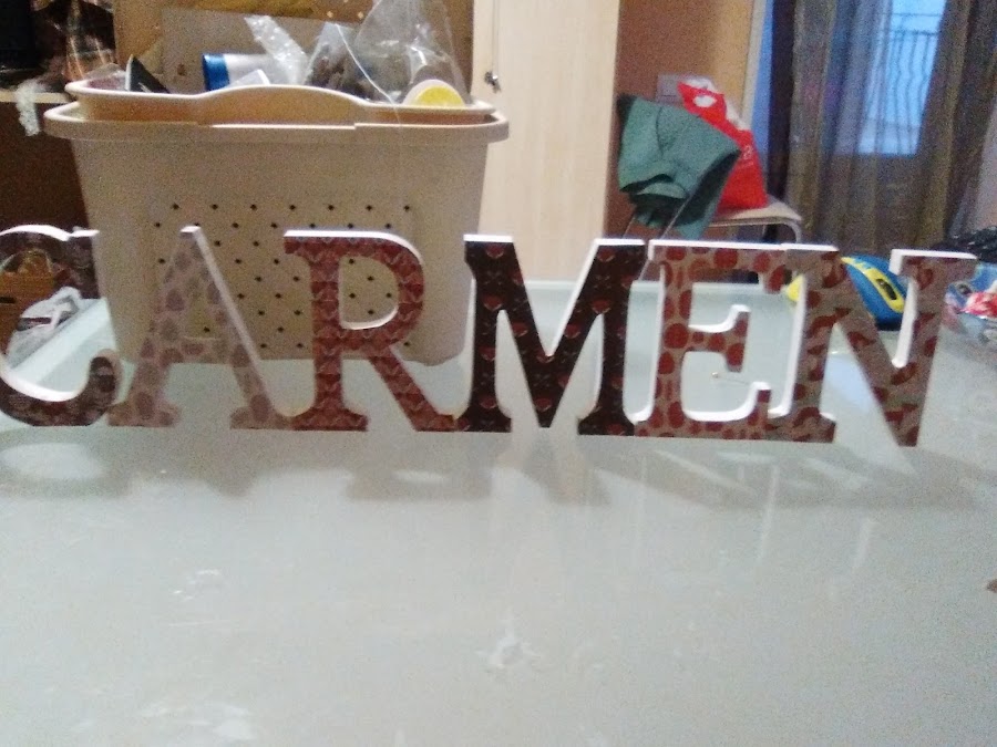 A la hora de pegarlas, tener encuenta que la cola se tiene que poner por la parte delantera de la letra, por que si no se nos quedaria decorada del reves.