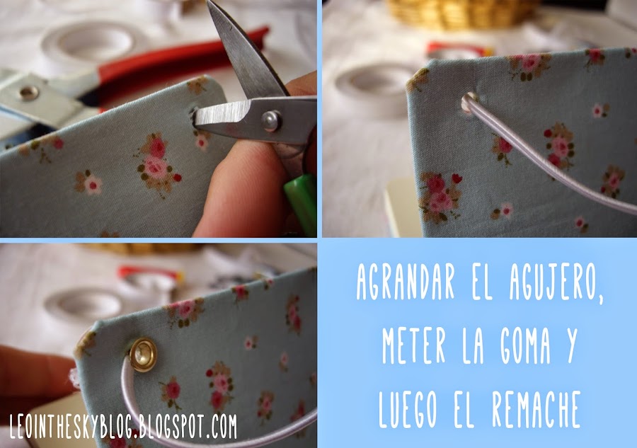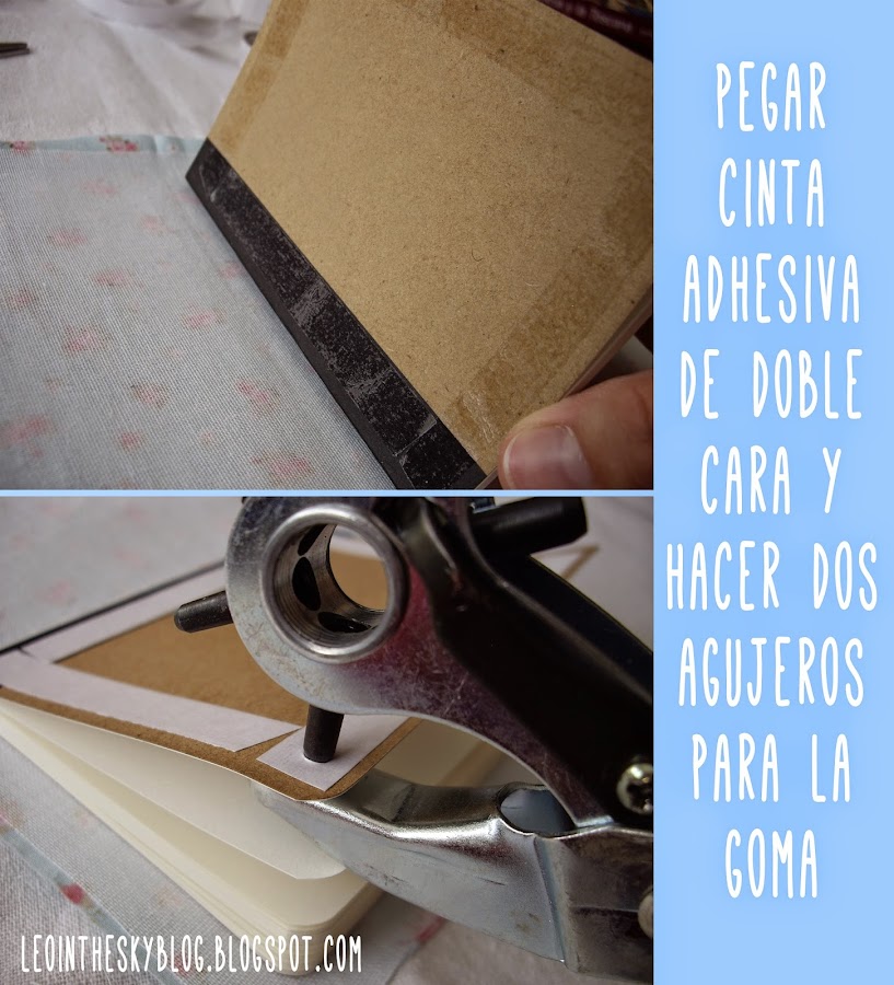 Es mejor utilizar goma plana para este trabajo, yo no tenía en casa ninguna y por eso usé el doble cordón de goma, podéis ver cómo lo hice en esta libreta, de esa forma cuando aplastas el remache queda mejor acabado por dentro.