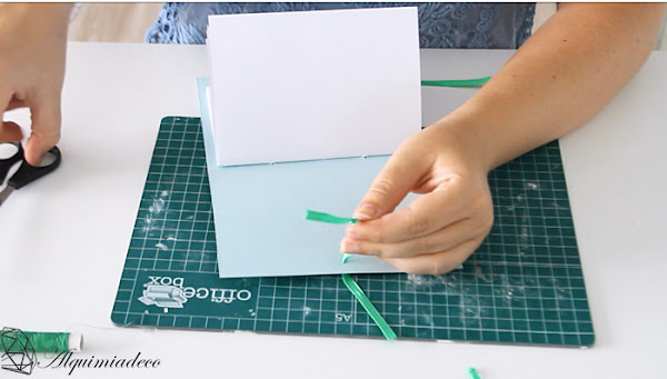 Cuando lo tengamos listo, vamos a engancharle nuestro papel. Como el mio es autoadhesivo es mucho más facil, por el contrario, si vosotras tenéis papel normal, le añadís un poco de pegamento y listo.