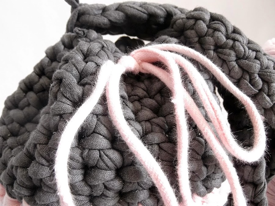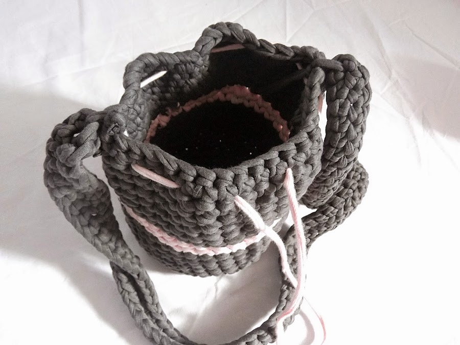 Solo nos queda hacer el asa, para el que hice una cadeneta de 80 puntos y puntos bajos en cada lado de la cadeneta. Nunca lo había hecho y quedó bastante resultón.