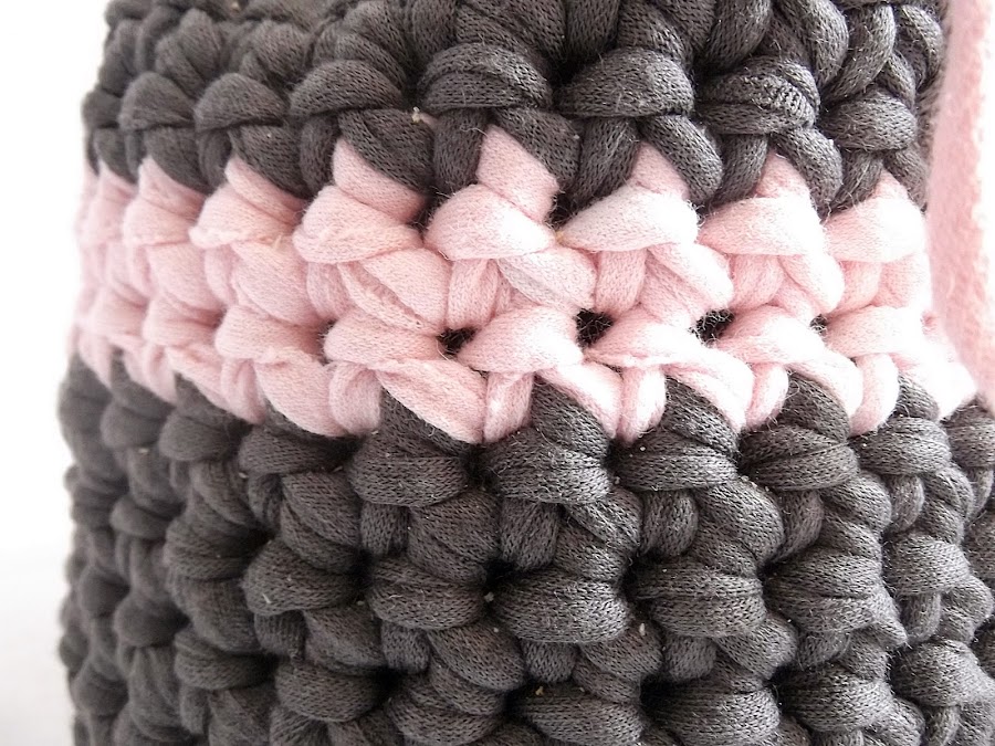 Al igual que el mini capazo, es muy muy fácil y rápido (la terminé en menos de 5 horas). Para la base hice un trabajo circular en 36 puntos, ya que menos se me hacía muy pequeñita, y luego nada más es subir hasta la altura deseada. En mi caso, a media altura más o menos, cambié de color para que no quedase tan monótono.