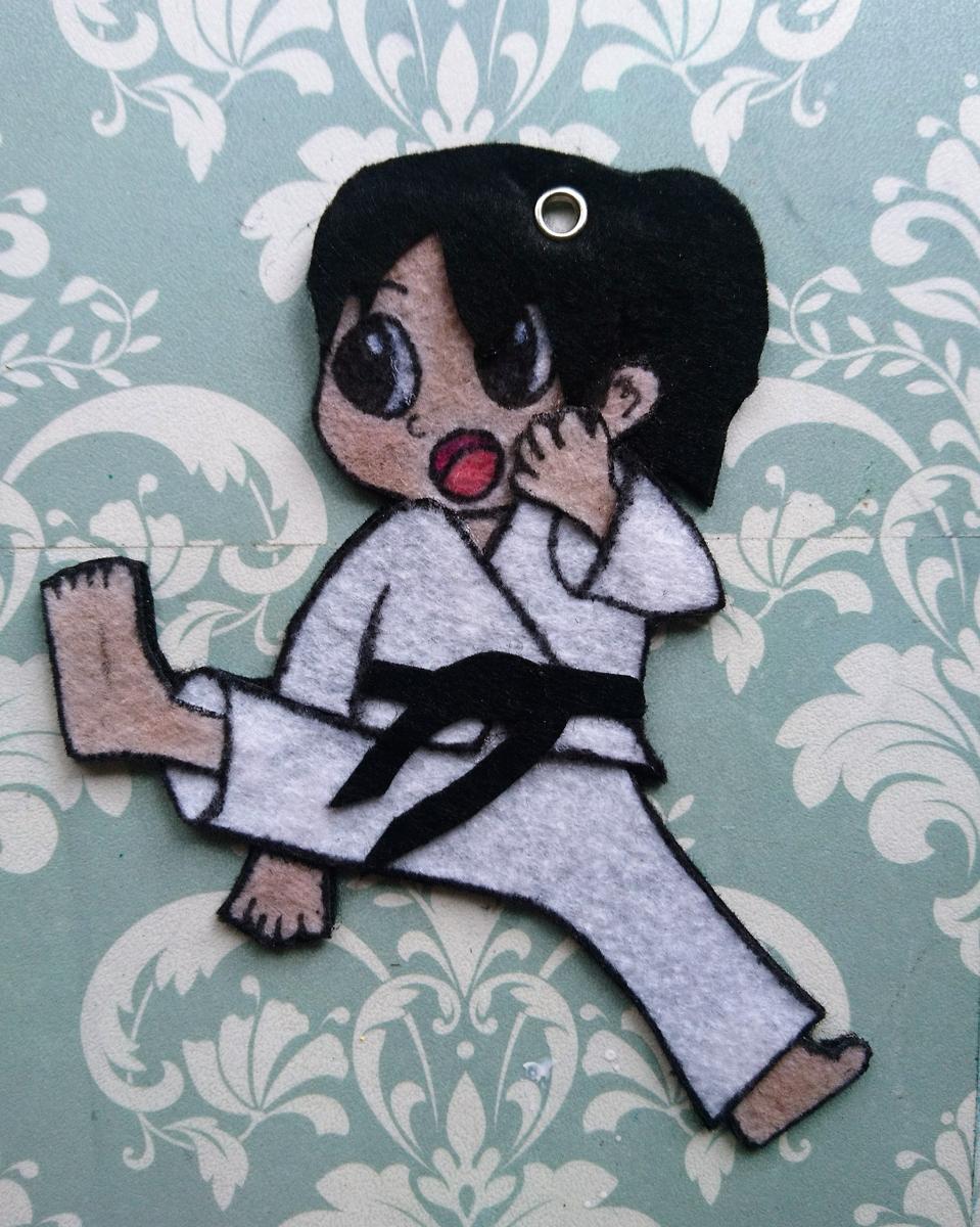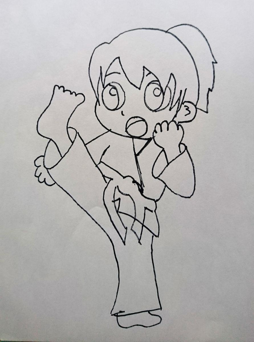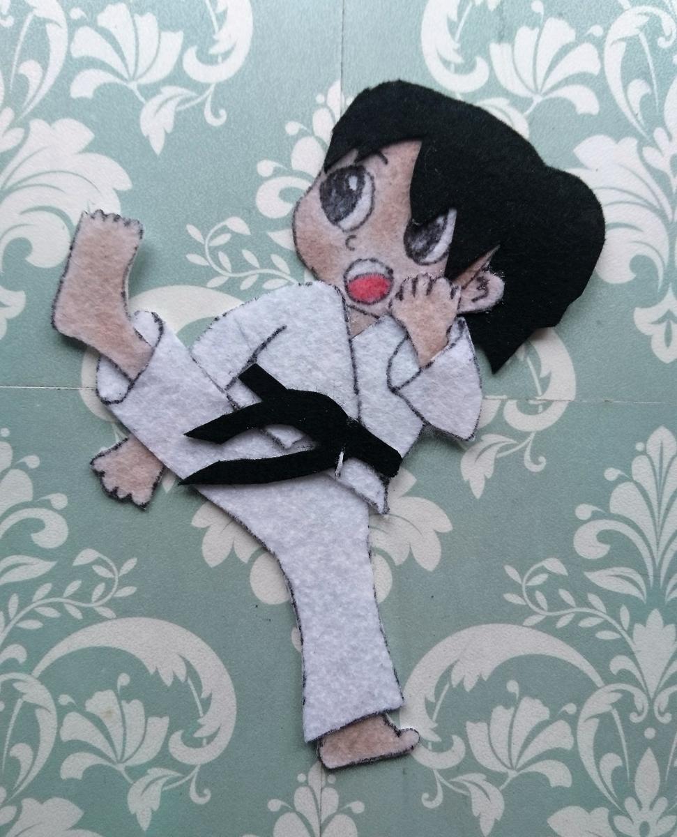 Materiales. Lo primero que haremos es una plantilla con el dibujo al que vamos a dar forma. Como practico artes marciales desde niña, y soy profesora de ello, ha hecho un llavero acorde a mi profesión, dibujando a una chica dando una patada, vistiendo con kimono.