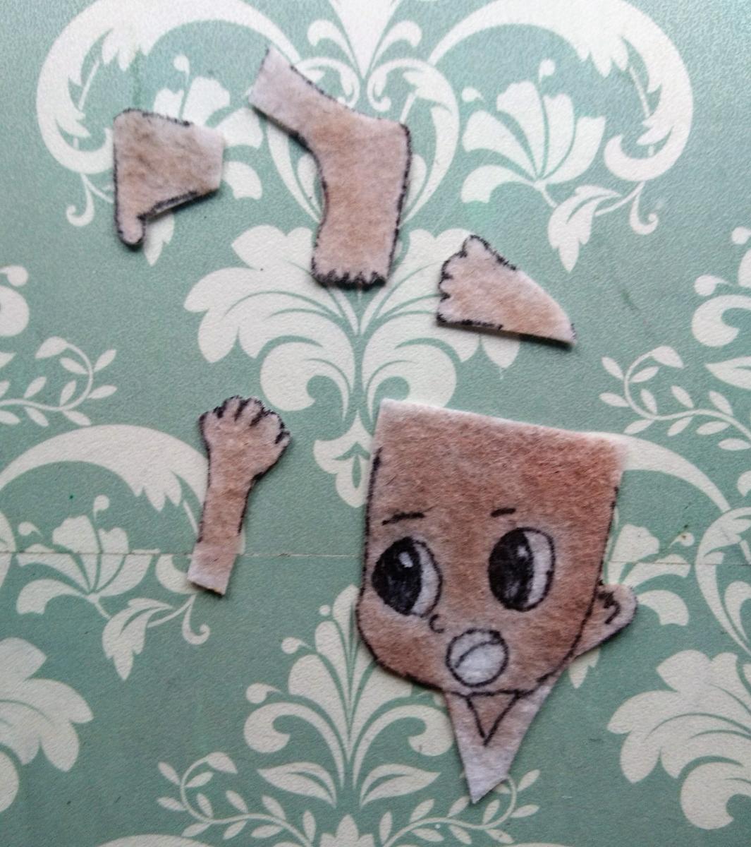 Piezas del llavero. También con ayuda del maquillaje, vamos a dar color a la cara, manos y pies.