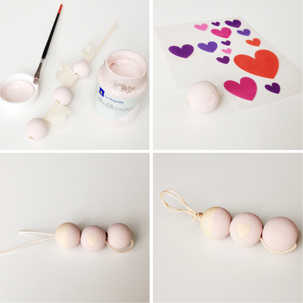 Lo que hay que hacer primero es pintar las bolas de madera. Tienes el paso a paso de cómo pintarlas más detalladamente en el tutorial del collar que hice el verano pasado.
