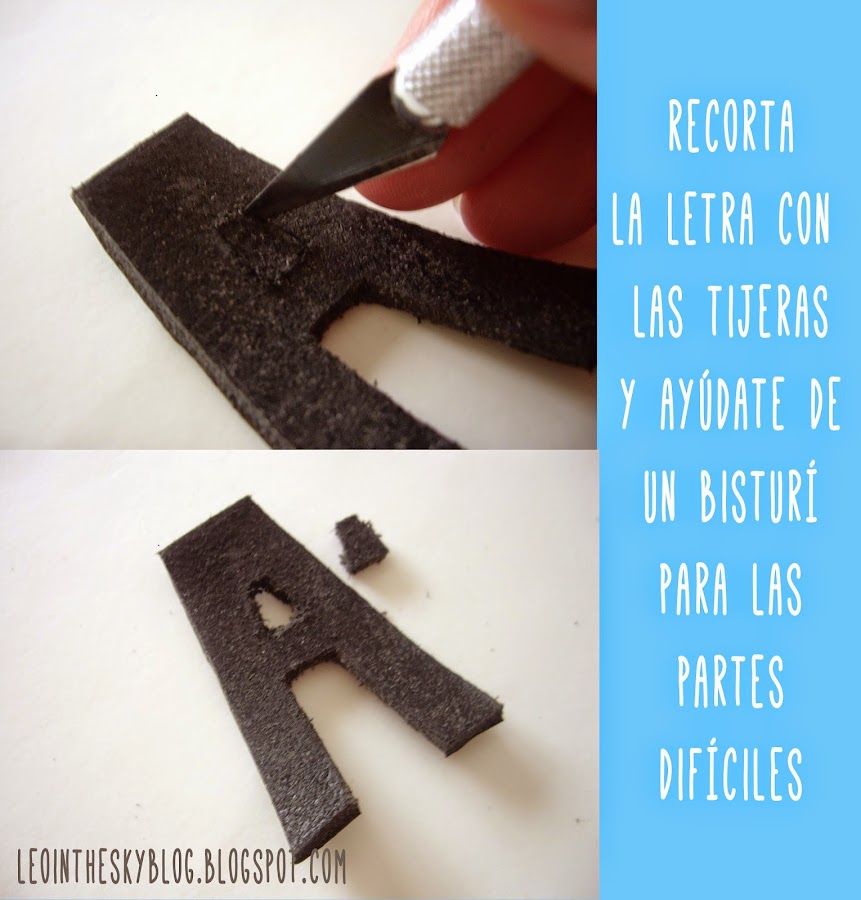 Yo hice unas letras (nuestras iniciales) pero también se podría hacer una casita, un corazón..., cualquier dibujo de formas simples, para que luego cortarlo no se haga muy cuesta arriba, ya sabéis, el límite es vuestra imaginación...