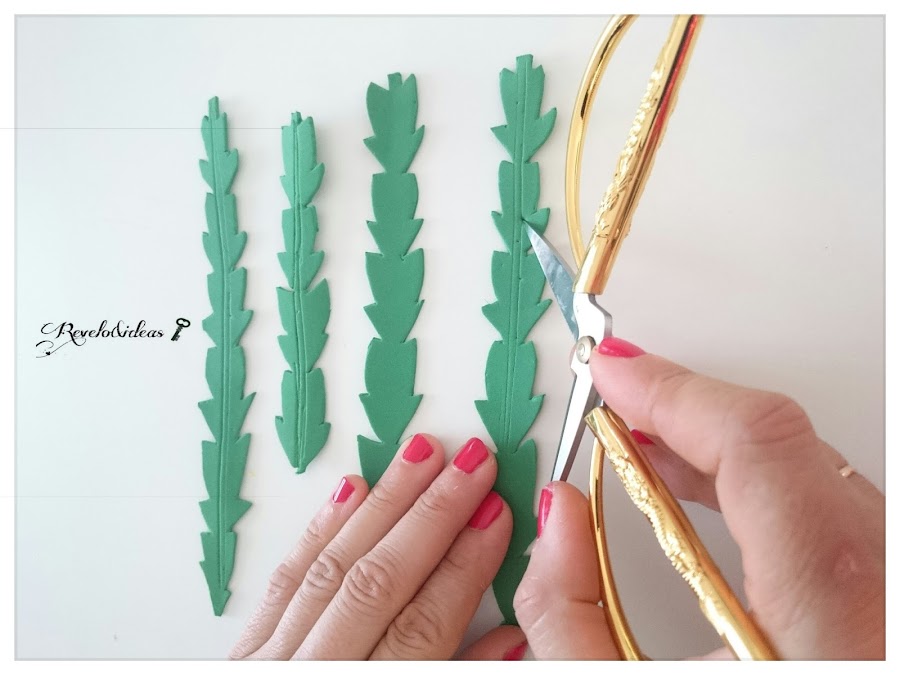 Una vez diujado sobre la goma eva, todas las siluetas de las hojas, recortar con las tijeras una por una.