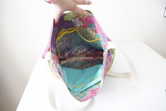 El bolsillo interior es de quita y pon. Va sujeto con snaps. También os explico en el vídeo la opción de coserlo.