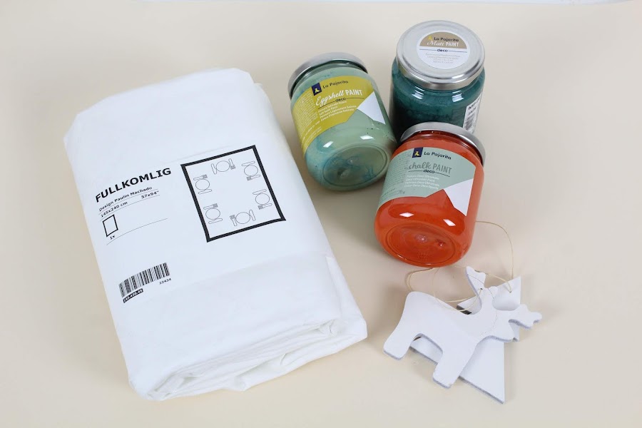 4 Paso: Dejáis secar bien la pintura, aplicáis una capa de Medium Textil para proteger y ya tenéis un fantástico mantel navideño personalizado.