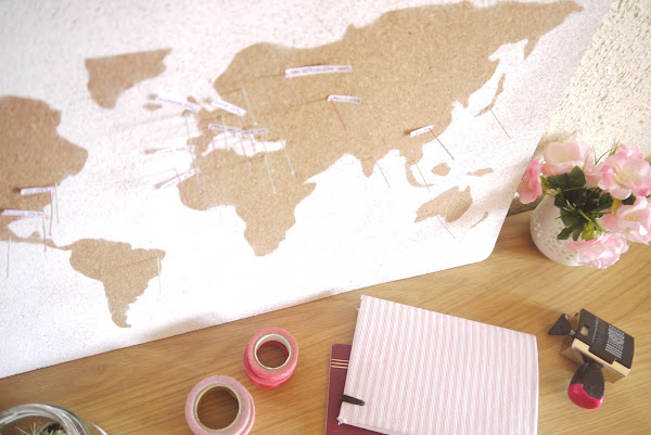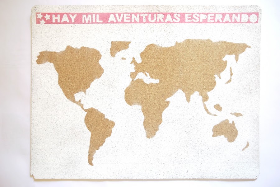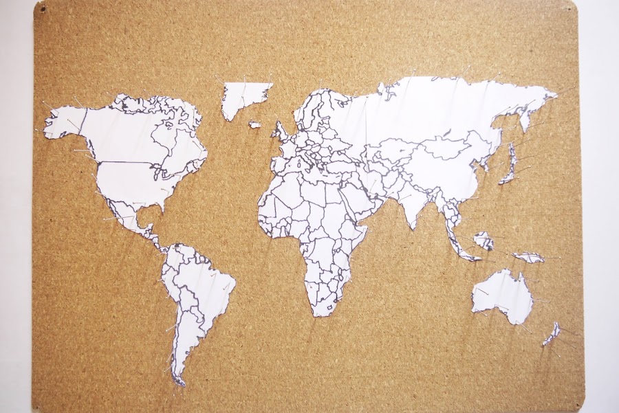 la semana que viene me voy de viaje y me han entrado unas ganas locas de hacer un diy que llevaba tiempo queriendo hacer. Se trata de hacer un mapa mundi sobre un corcho para ir marcando los sitios en los que has estado y a los que te gustaría ir.