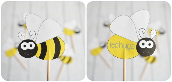 Una vez que las tengas recórtalas todas y escribe, en la abejita que no tiene rayas, el nombre de cada una de tus plantas.