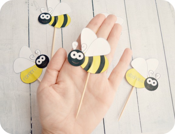 Luego pega el palillo en la mitad de una de las abejas con rayas y por detrás pega la otra con el nombre y listo!!! Ya tienes un marcador ^^