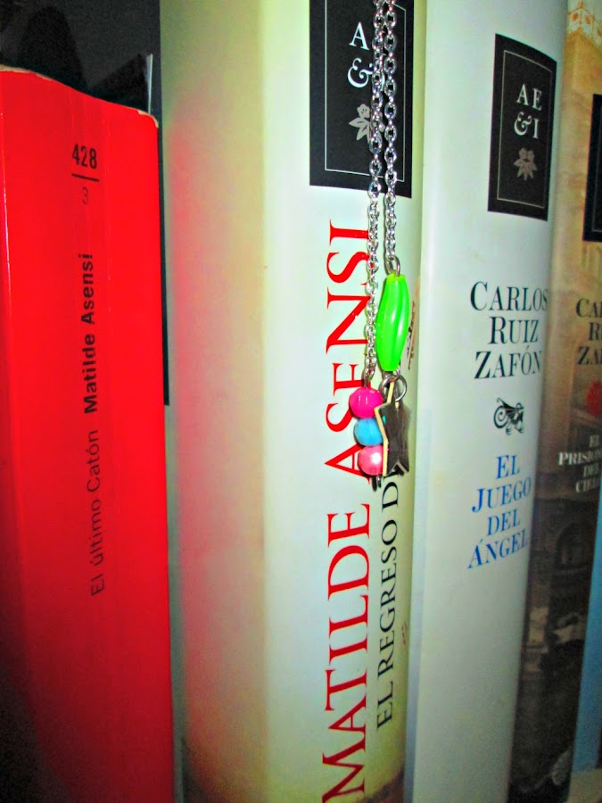 El último paso es poner los alfileres en el final de la cadena y... Voilà! Ya tenemos hecho nuestro marcapáginas.