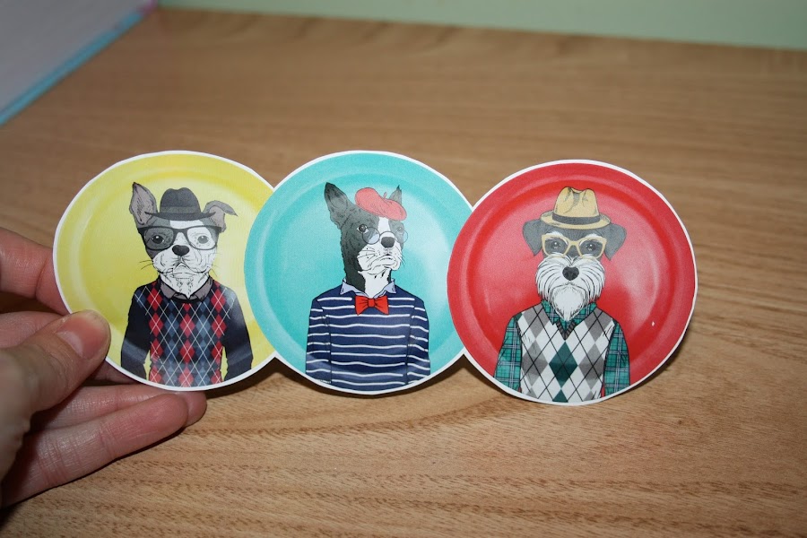 Yo encontré estas imágenes de perritos de una revista de decoración y me parecieron de lo más simpático así que fue una de las que elegí. Después las recorté.