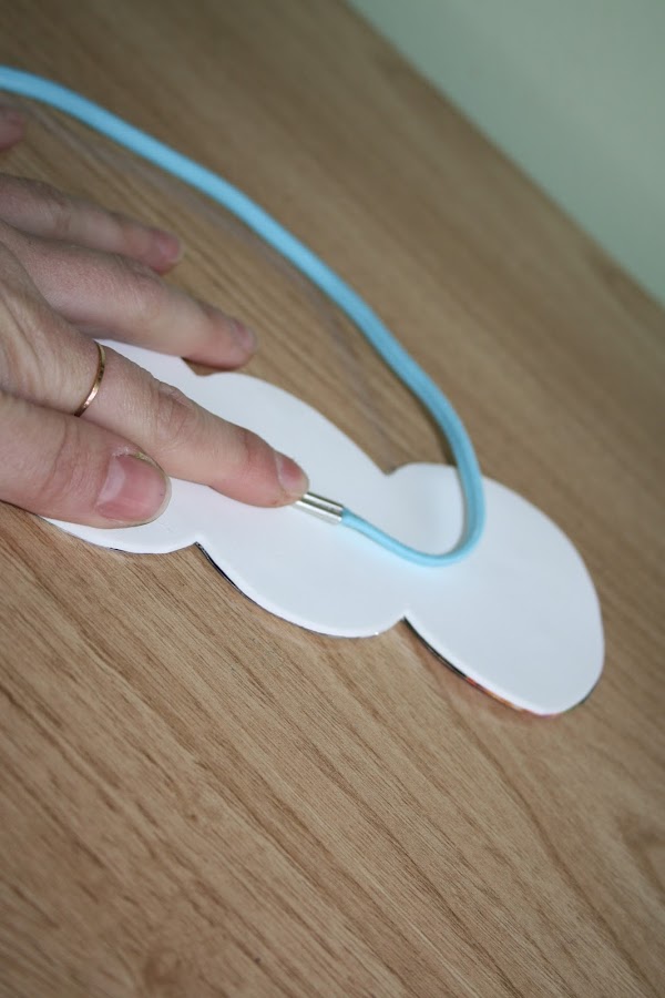 Tras esto, lo que haremos será medir la goma del pelo para ajustarla al libro que vayamos a usar. Esto quiere decir que el largo de la goma dependerá del libro en el que vamos a usar el marcapáginas. Podemos dejar la goma tal cual para libros más grandes o cortar un trozo para libros más pequeños.