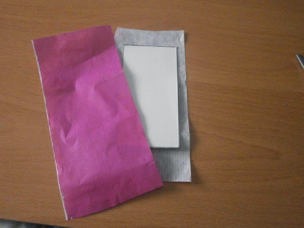 Le pegué papel de regalo por ambas caras del cartón y recorté el sobrante.
