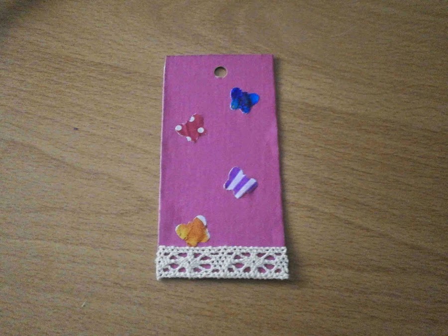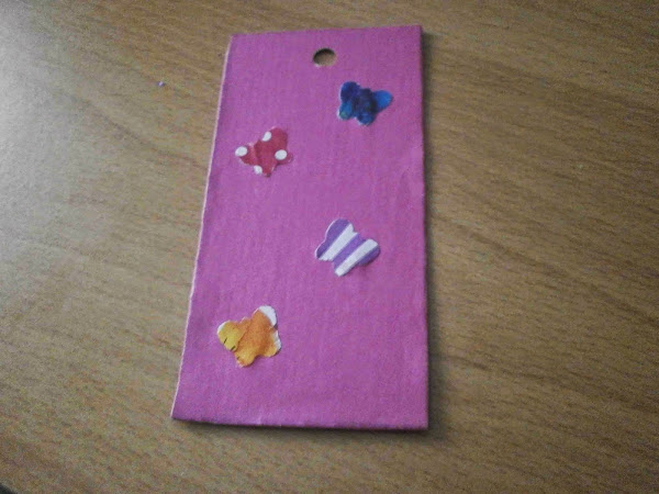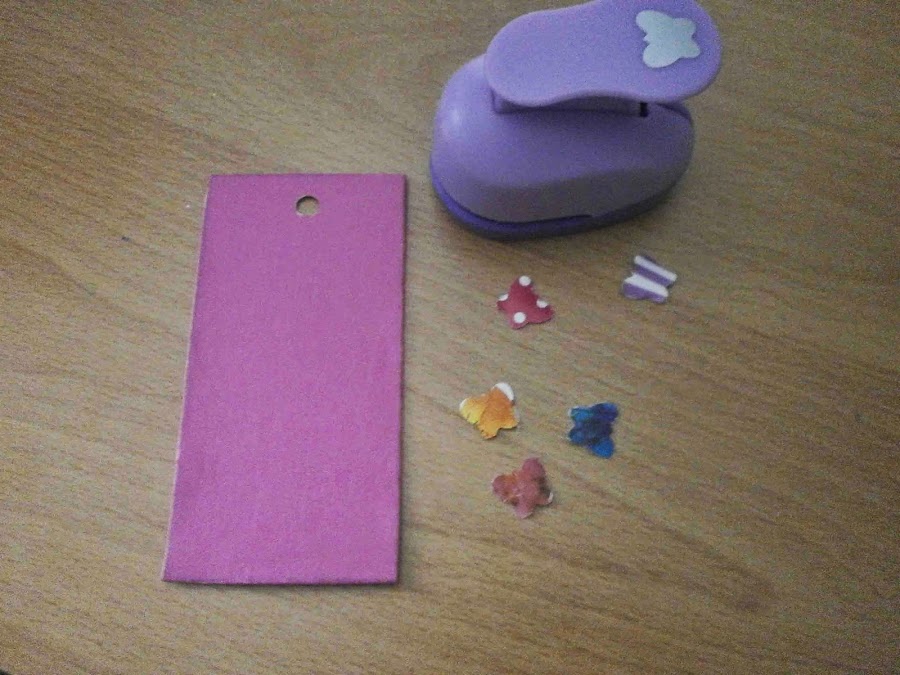 Con la troqueladora hice unas mariposas con papel de colores y las pegué.