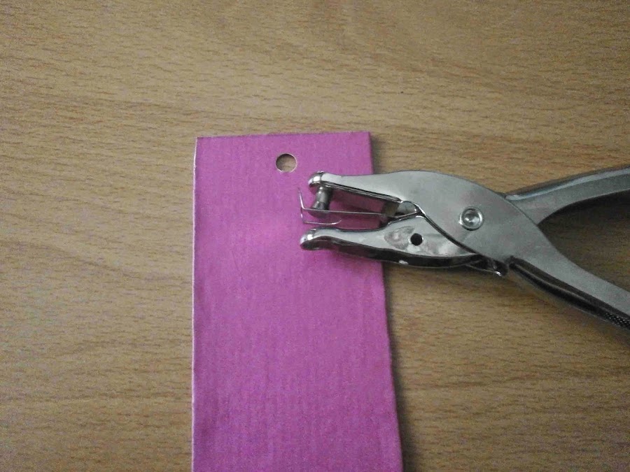 Le hice un agujerito con la perforadora de papel.