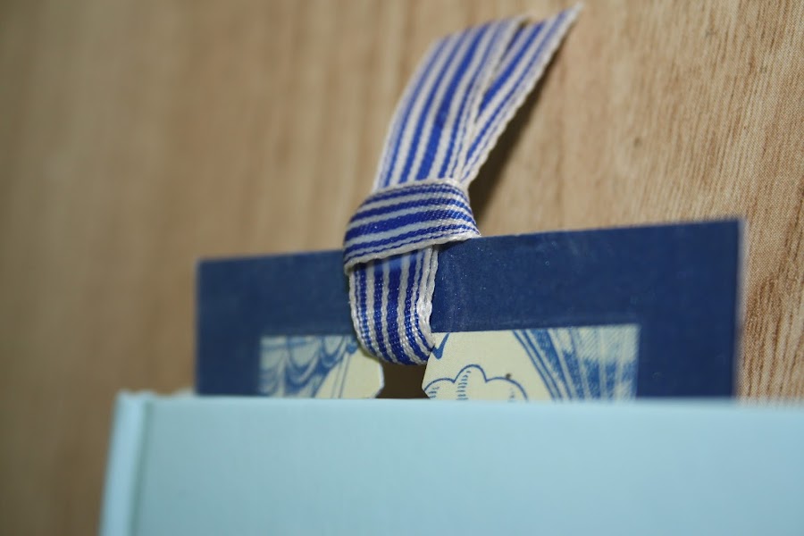 Mas tarde haremos un agujero con la troqueladora en la parte superior y finalmente haremos un nudo en el lazo para que quede suelto y así se verá cuando el libro esté cerrado. Si queréis podéis ponerle una gota de pegamento en el lazo para que no se deshaga y quede fijo.
