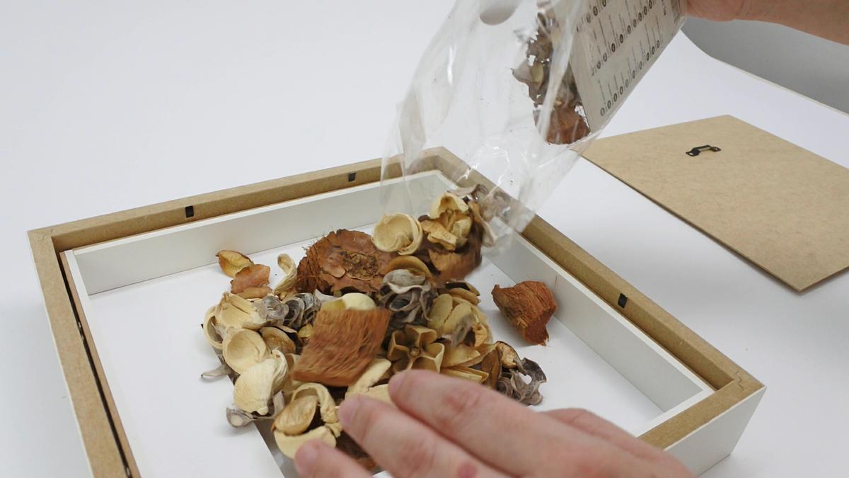 Con esta nueva disposición, es el momento de colocar nuestra mezcla de flores secas.