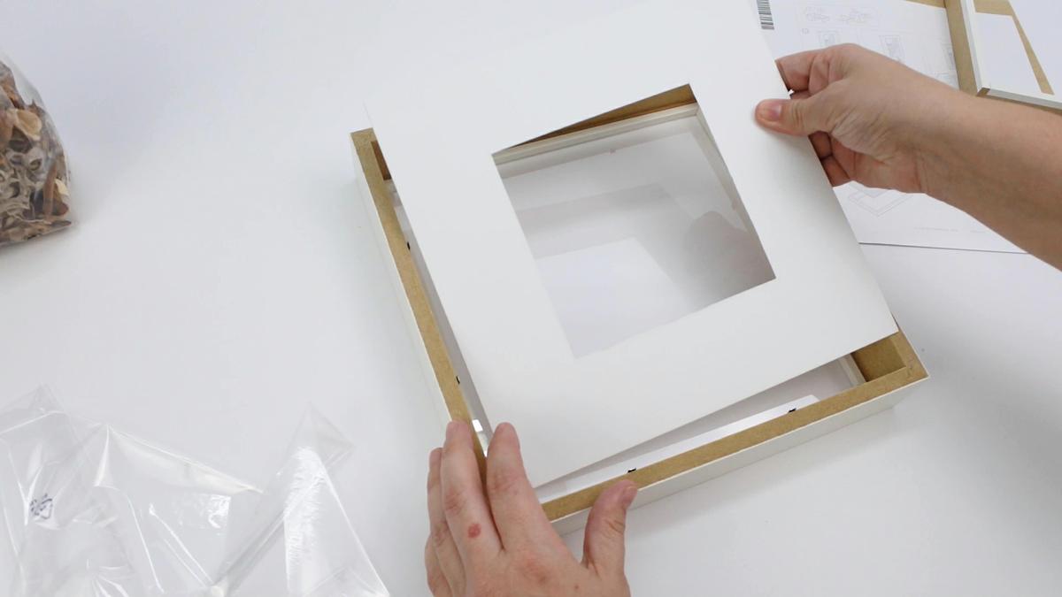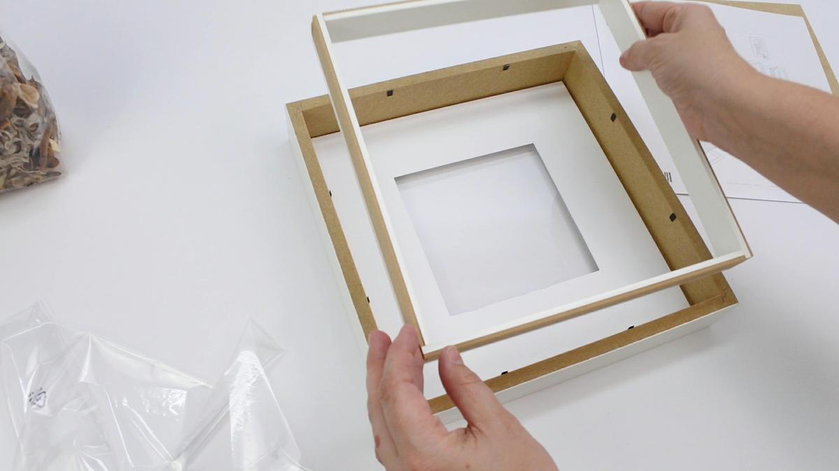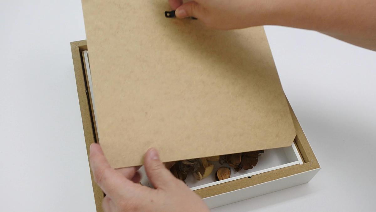 Una vez la hemos esparcido correctamente, tan solo nos queda cerrar de nuevo nuestro marco. Para ello no es necesario añadir nada más, la propia tapa del marco ejercerá presión sobre las hojas y de este modo no se moverán y quedarán perfectamente.