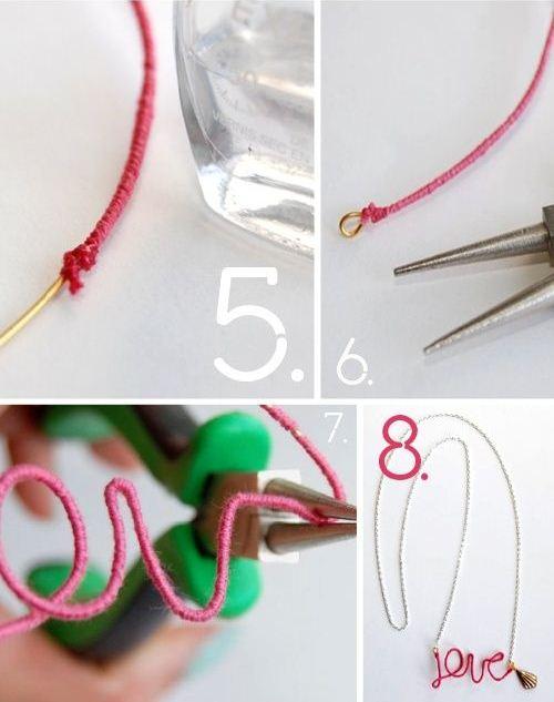 5. Cuando hayas terminado de doblar la figura o el mensaje que querías, utiliza la misma cadena para unir la cadenita al alambre.