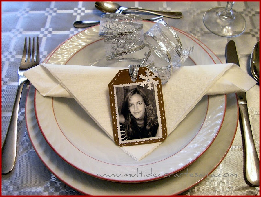 Aquí estoy con la decoración de la mesa para la cena de Noche Buena a última hora, como siempre, así que una vez más he recurrido a un adorno sencillo para los identificadores.