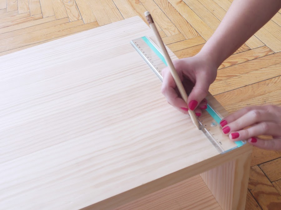 3. Utiliza una regla y un lápiz para marcar el lugar donde irán las patas. Yo las he colocado a 5 centímetros del borde.