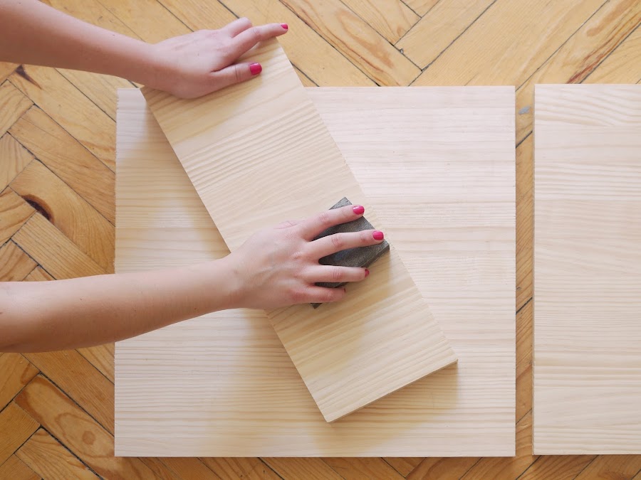 1. Lija los tableros de madera con la esponja