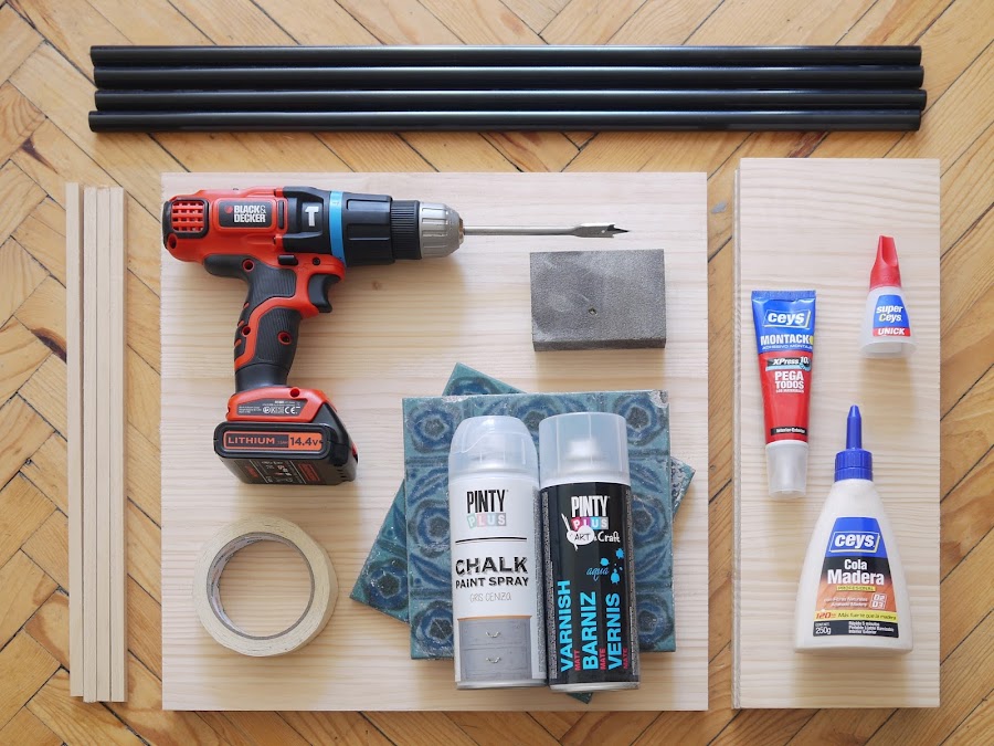 - azulejos y listones de madera de 1x1 (que al final no he podido utilizar)