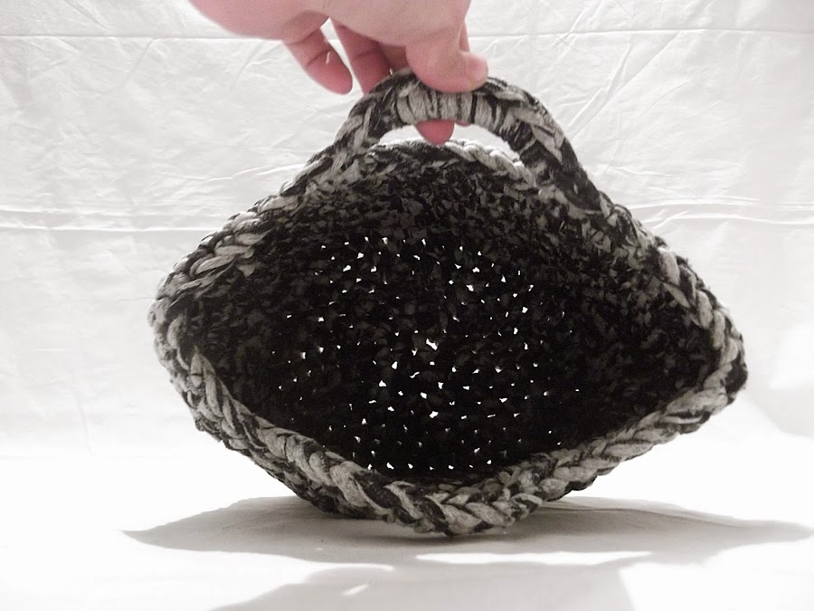 Tras llegar a casa, me tenía unos cuantos en Pinterest (¡sí, mi madre por Pinterest!) y me dijo que eligiese el que más me gustase. Me gustaron varios, el modelo que hoy te enseño y el que verás mañana.Lo vi realmente sencillo, prácticamente era hacer una cesta con una base grandecita y una altura considerable. Ponerle unas asas y ¡ya tenemos el bolso listo!