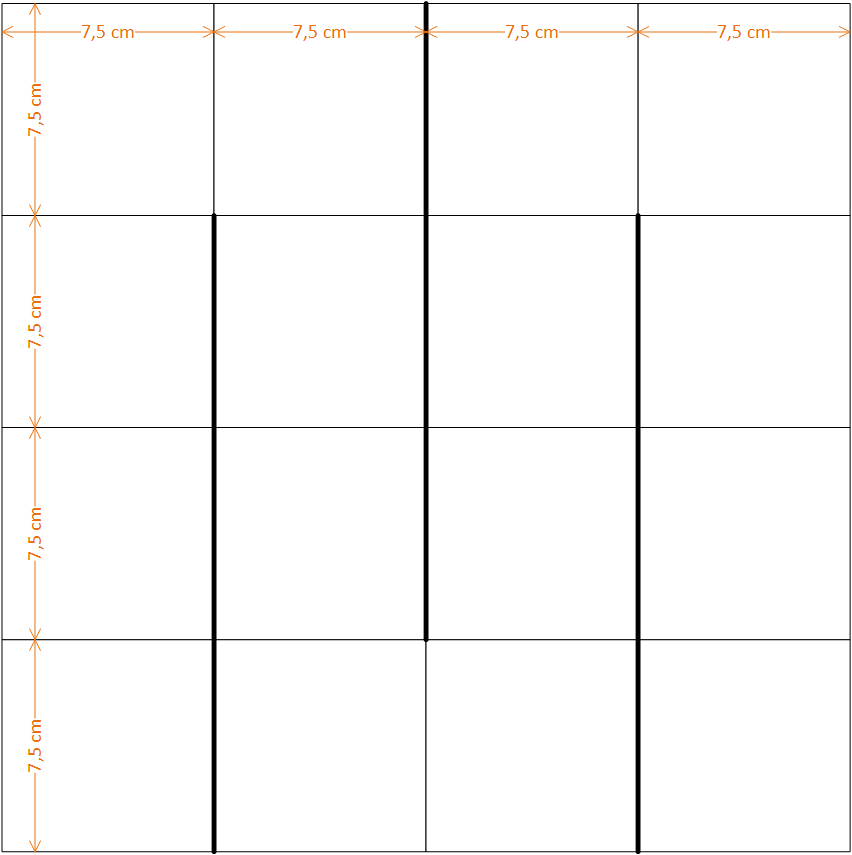 2º Marcamos a las distancias de la imagen, cada 7,5 cm en cada uno de los lados. Nos tienen que quedar cuadrados.