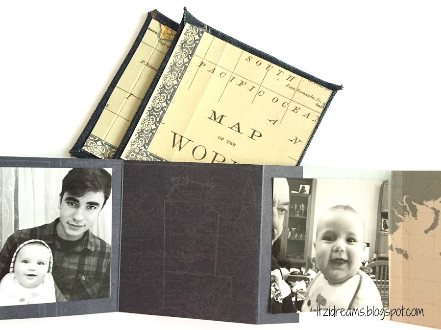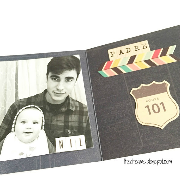 Pegamos con cinta de doble cara el álbum a las tapas, con los extremos de las tiras, y ya tendremos un mini álbum cartera para nuestro padre!!