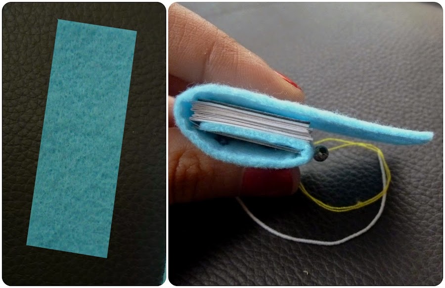 Es taaan pequeño que no puedo evitar verlo collejísimo!! Quéria haber hecho un tutorial completo, pero como no pude echar las fotos al proceso de "encuadernar" las hojas de mi librito, y tampoco es que sea yo muy experimentada en el tema. He pensado que os puedo dejar un enlace al tutorial de encuadernación por el que yo me guié y así sólo me quedará explicaros como hacer la fundita que lo cubre (que equivale a las pastas de mi libro :) )
