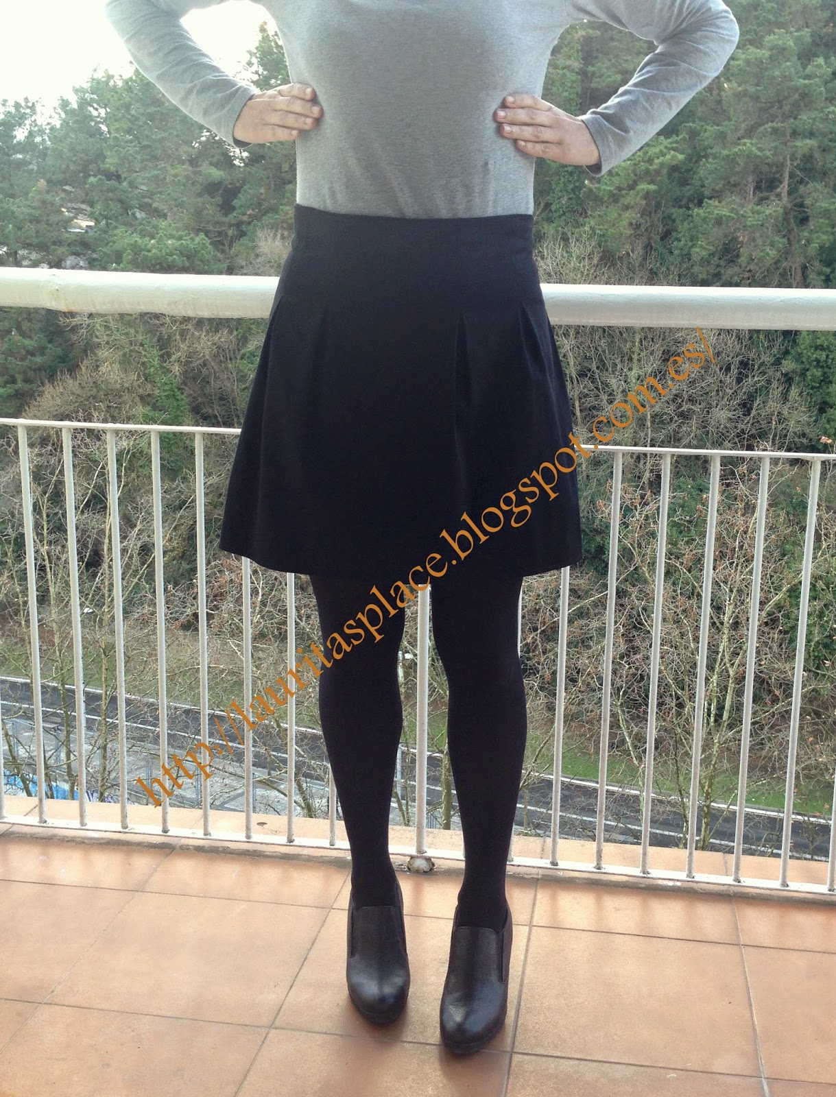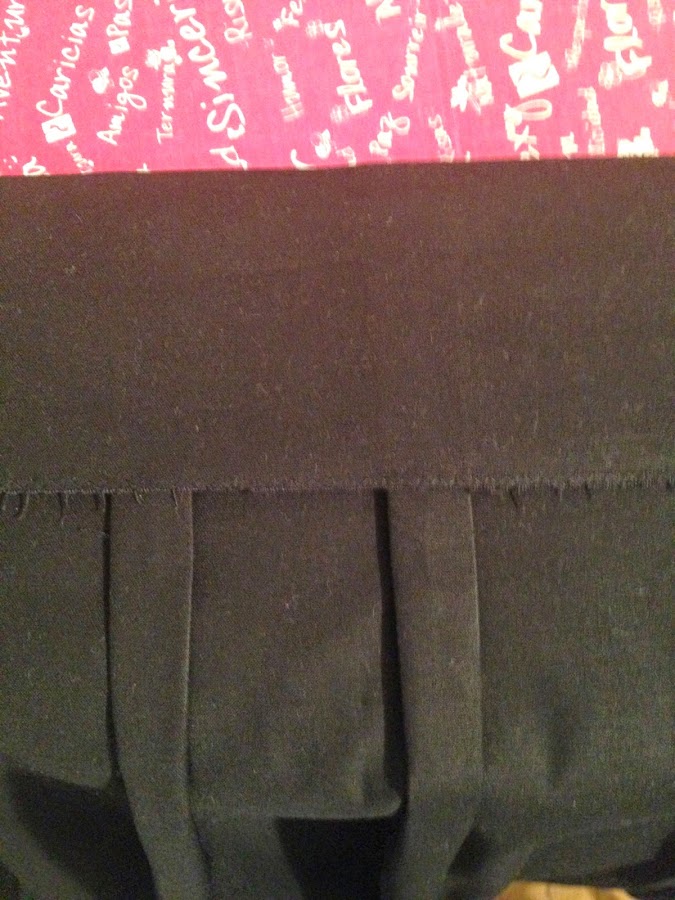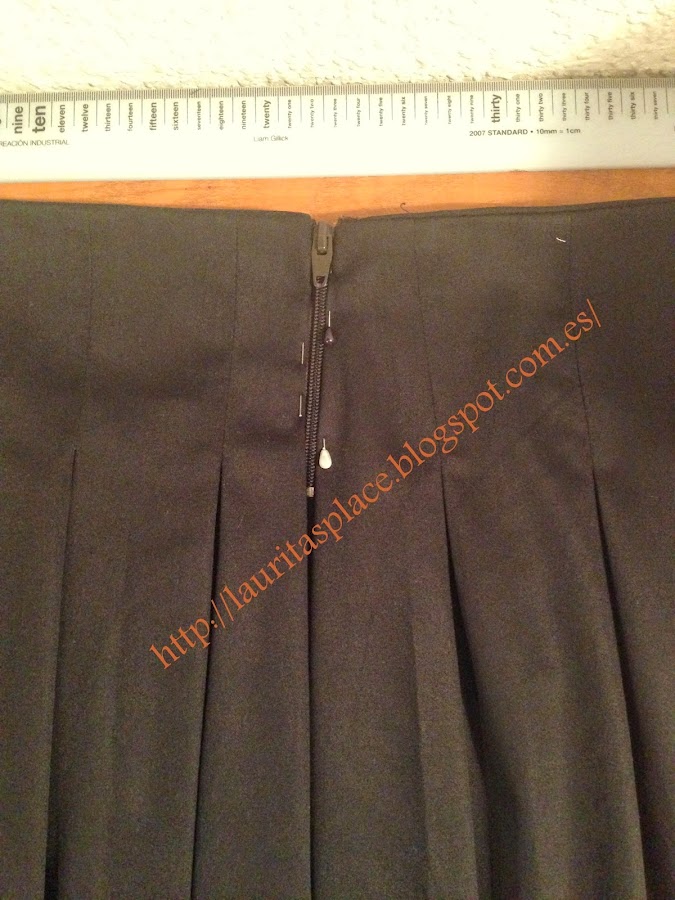 No le he puesto cintura, al igual que la foto original. He dudado si en ponerle entretela al refuerzo interior de la cintura, pero al final no lo he hecho porque la tela es algo gruesa. He cosido la pieza interior de la cintura a la falda "estirándola" un poco para que quedase un poquito tensada, y así se me ajustase mejor a la cintura.
