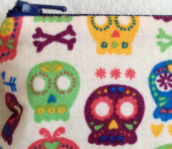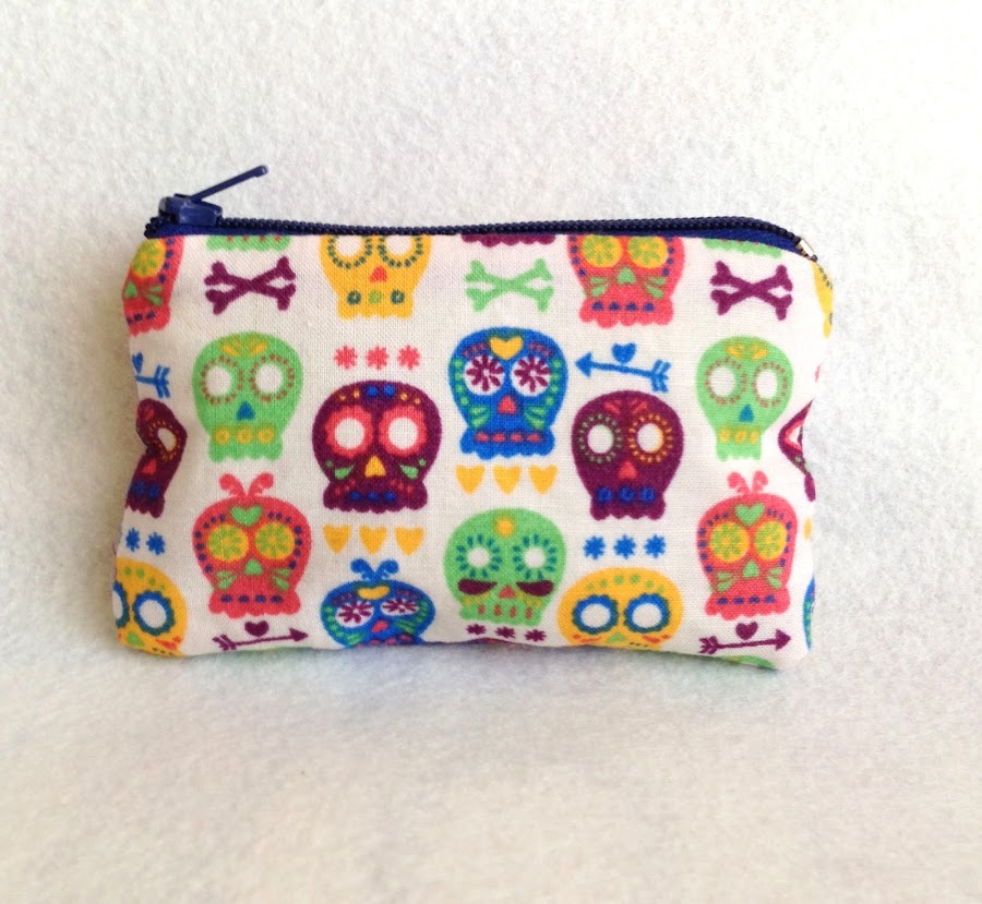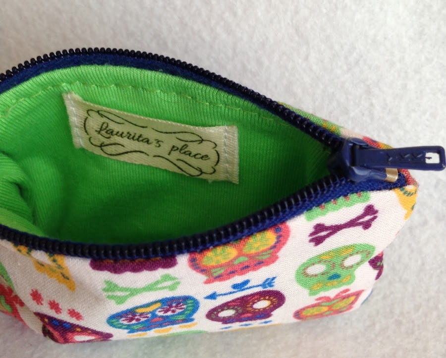 Maridín me pidió un monedero y ¿cómo me voy a negar? Le ofrecí a escoger entre las telas que tenía disponibles (la mayoría de las telas de nuestra tienda Laurita´s Place son con motivos infantiles). Y escogío las Calaveras Mexicanas.