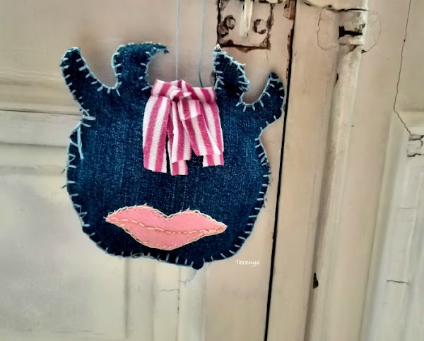 Están hechos casi todo con material reciclado, una pierna de tejano que recorté e hice short, una manga de camiseta, fieltro e hilo para bordar.