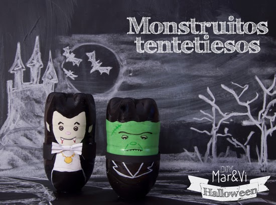 Estamos felices! Hemos comenzado una colaboración con PequeOcio.com, un sitio especializado en el mundo infantil con muchísimo público! Compartiremos nuestros tutoriales, y para comenzar decidimos preparar estos montruitos tentetiesos. usos creativos para las botellas de plástico. La idea recuerda un poco a el Papá Noel que hicimos hace un año atrás, pero esta vez hemos ido un poco más lejos: