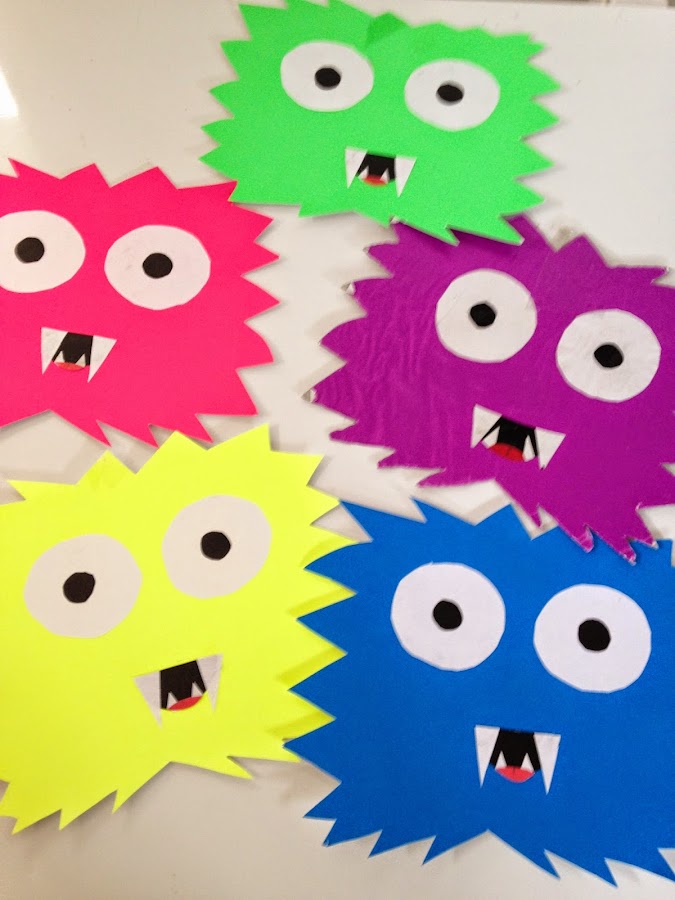 Acá les dejo otra manualidad súper sencilla que es creación de mi hija mayor cuando tenía 10. Y hasta el día de hoy adornamos los ventanales y puertas de la casa con sus bellos monstruos.