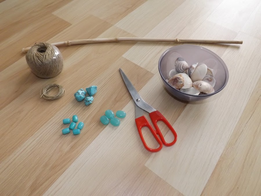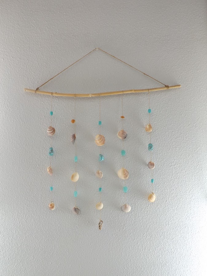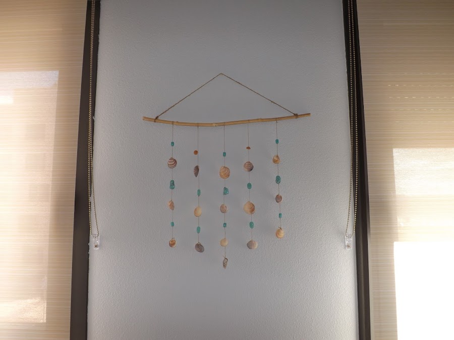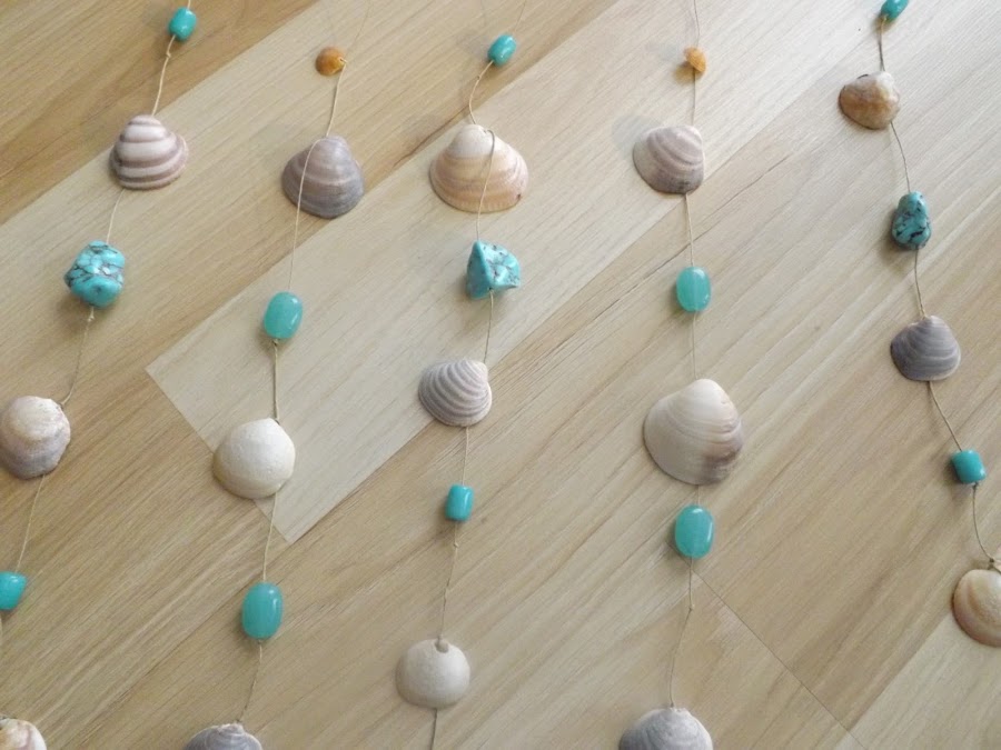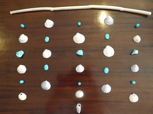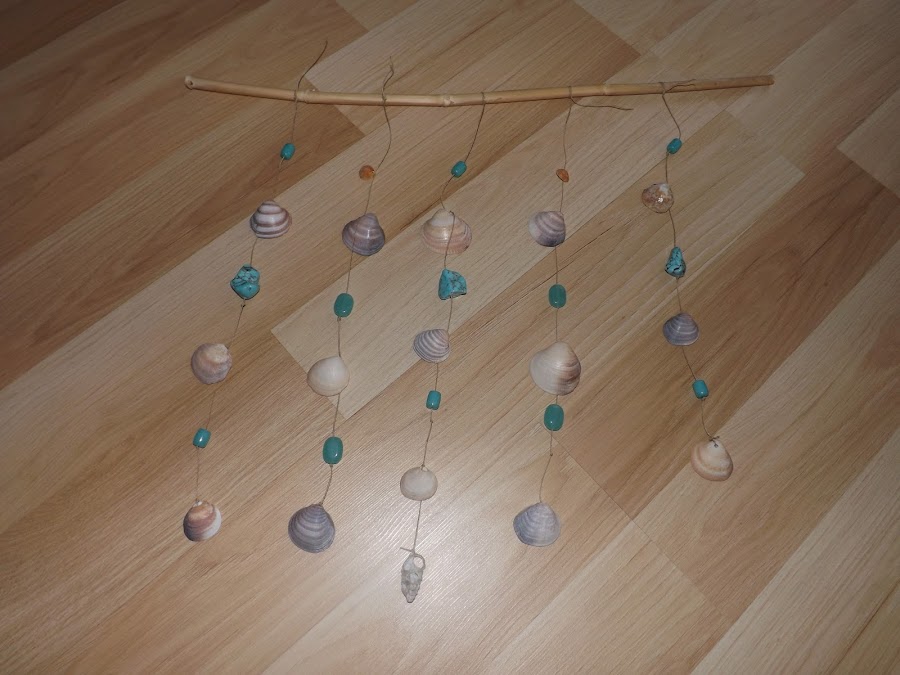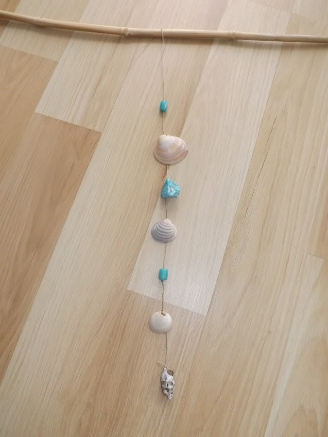 De momento vamos con el de hoy: un móvil de conchas y abalorios.