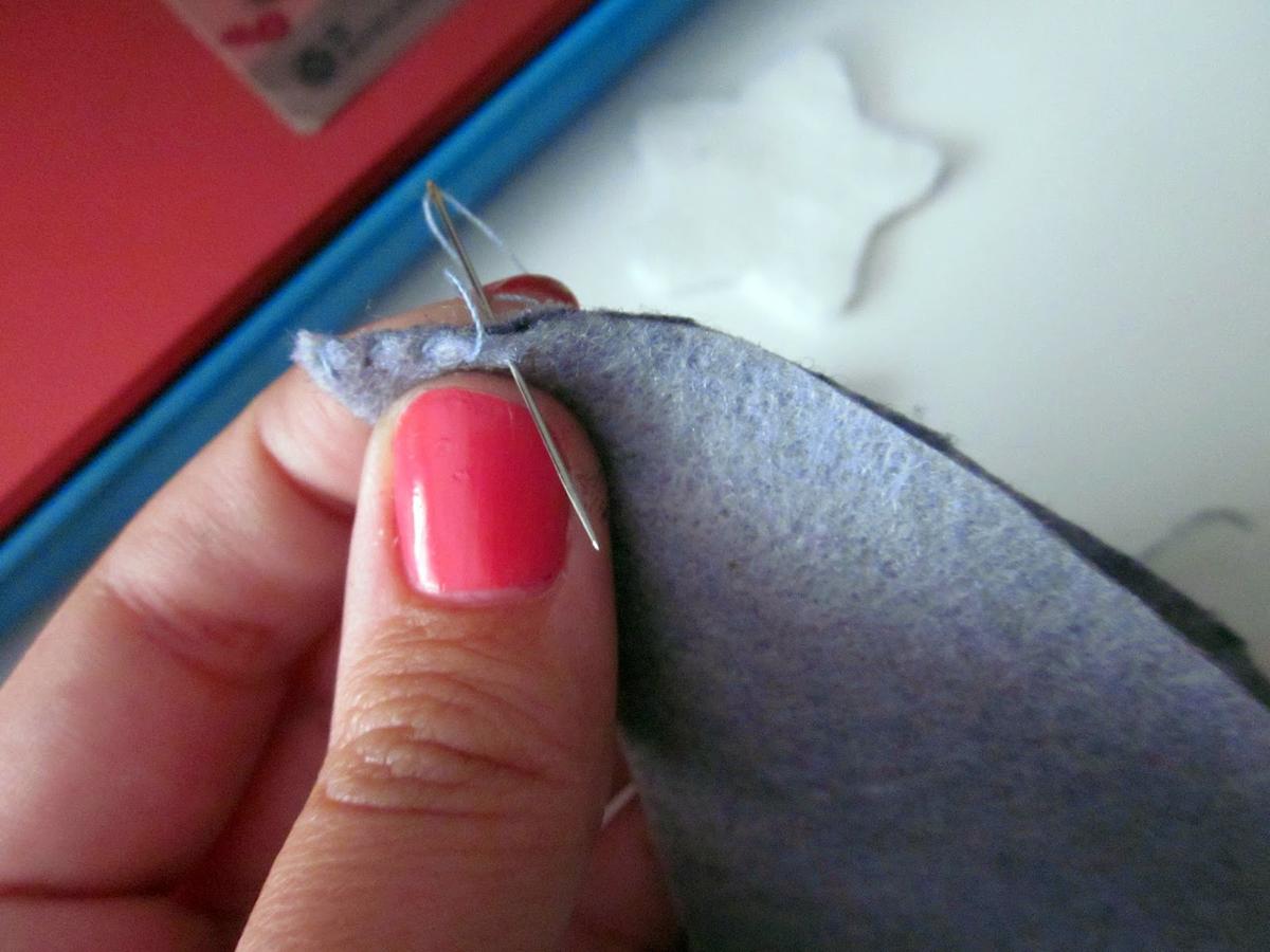 Una vez rellenas, empecé a coser el resto de fieltro que quedaba separado para cerrar las figuras.
