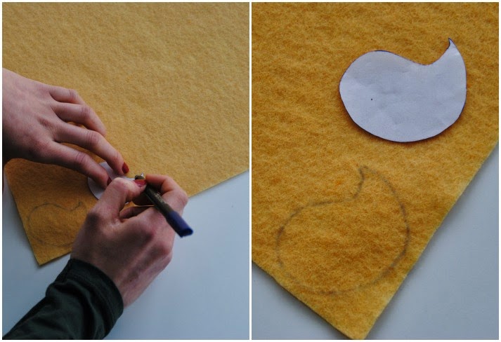 Lo primero, es marcar con la plantilla en el fieltro las figuras, que después recortaremos. La plantilla que elegí para los pájaros es de las más sencillas que encontré.