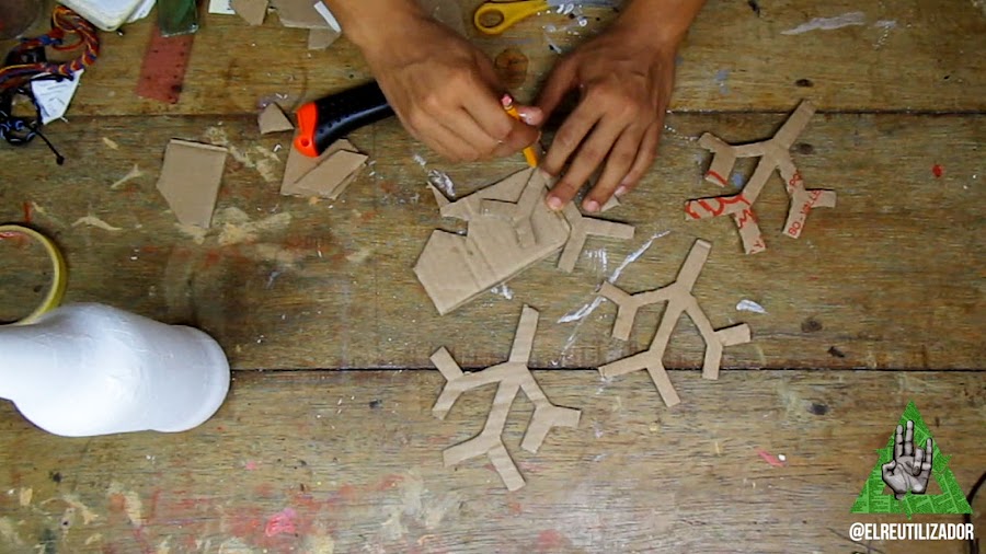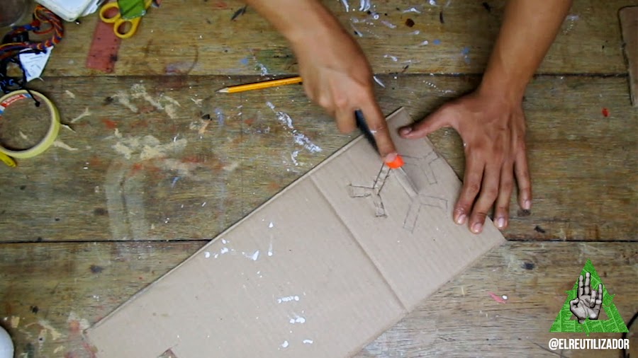 Paso #5.1: Sobre un trozo de cartón,trazaremos a gusto el bocetos de los brazos de nuestros muñecos y con ayuda de un cúter o bisturí, vamos a cortarlos.