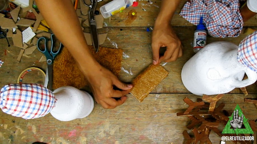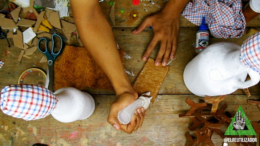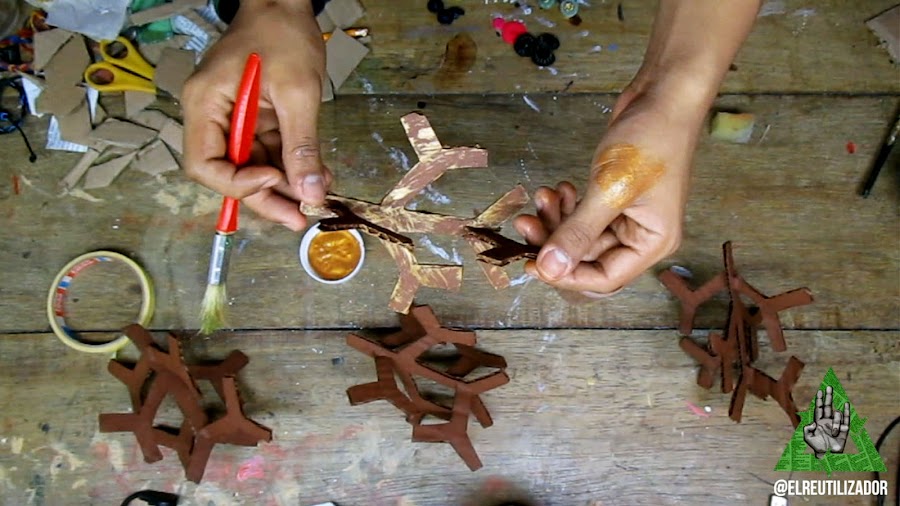 Paso #6: Procedemos a pintar de color marrón las estructuras de cartón.
