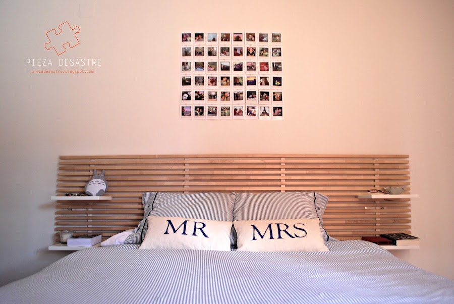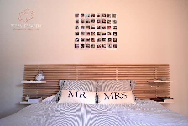 Este fue uno de los regalitos que le hice a mi chico en reyes y gracias a su ayuda inestimable pusimos el mural en nuestra habitación. Elegimos una dimensión de 6x8 fotografías y colocarlas encima del cabecero de la cama.