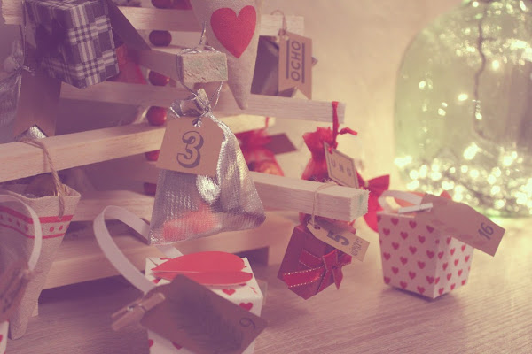 Ya sólo nos queda poner la etiqueta con el número de cada día y decorar con regalitos, planes, chocolatinas, bombones o lo que se os ocurra.