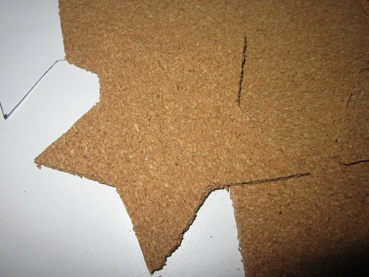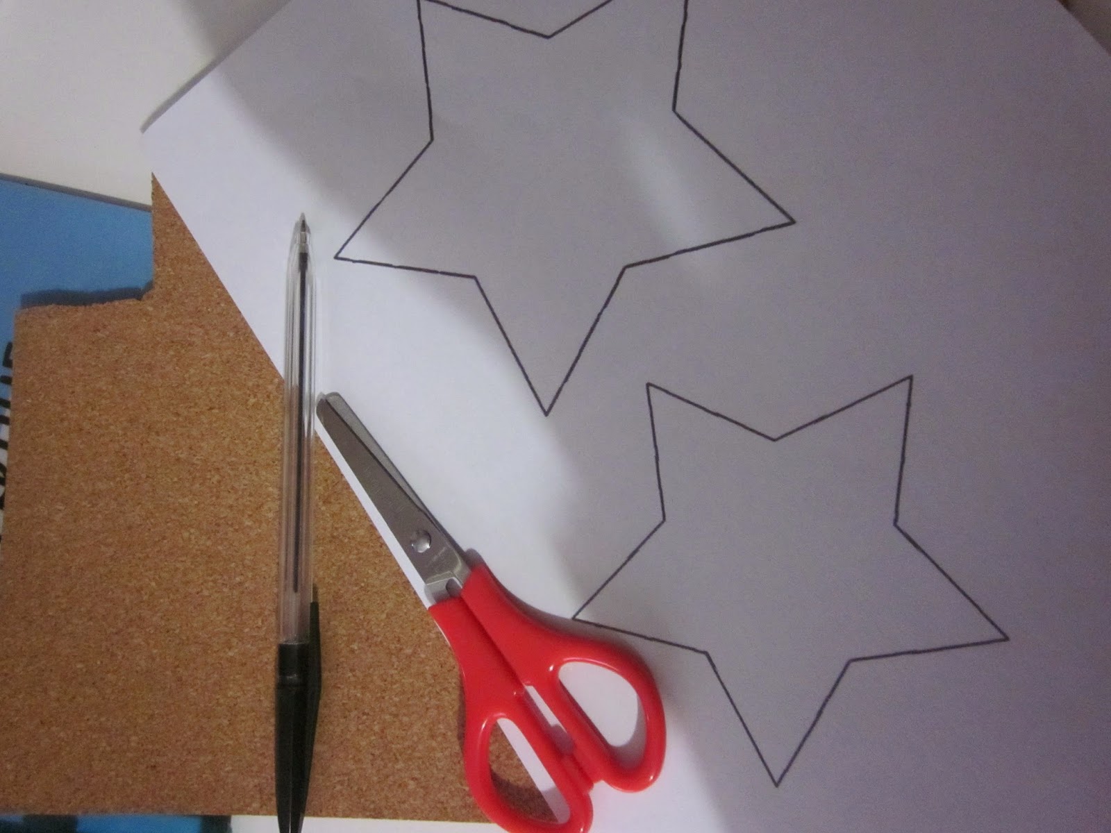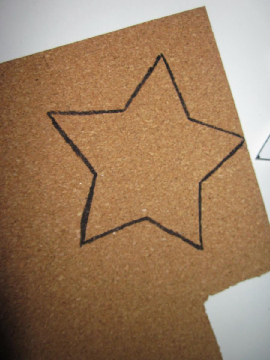 Lo primero que tenemos que hacer es dibujar una silueta de estrella en nuestro corcho. Yo os recomiendo que, para saber de qué tamaño la necesitáis, pongáis encima de la estrella vuestra taza favorita. Si sobra un poco de corcho de la estrella por los lados, entonces podéis empezar a recortar =)