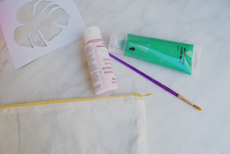También necesitaréis la plantilla de la monstera, que podéis encontrar en su blog, pintura (que sea textil, por que la mía es acrílica de toda la vida y queda bien, pero durara lo que dure), un lápiz con goma para hacer los puntitos y pincel.